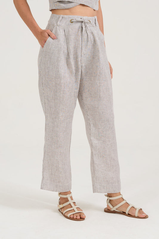 Calça Pregas Listras