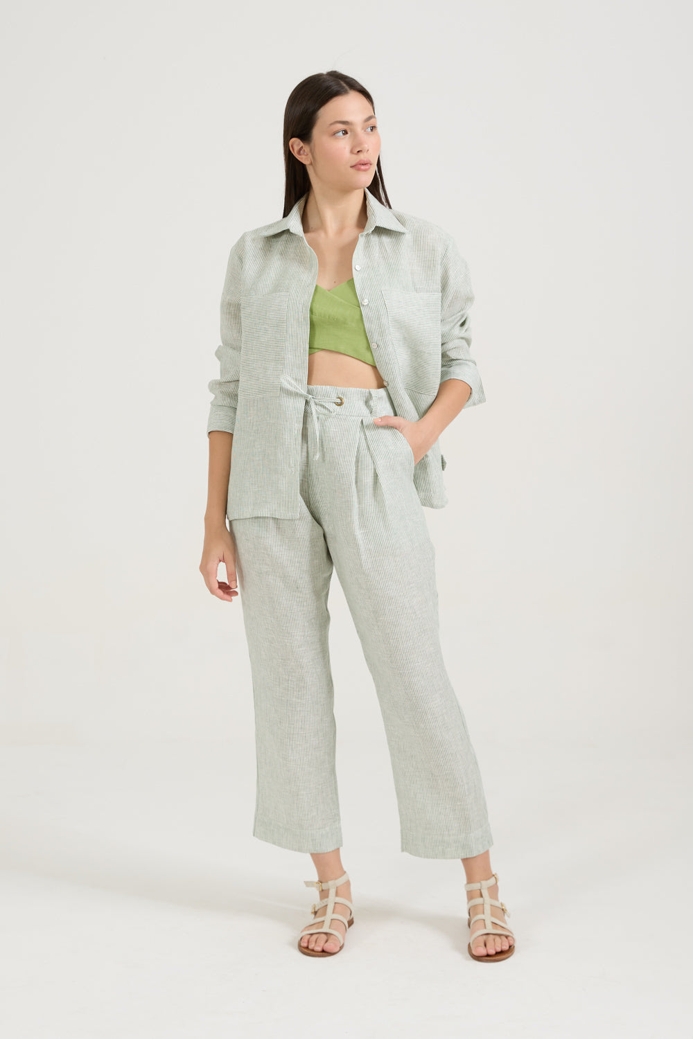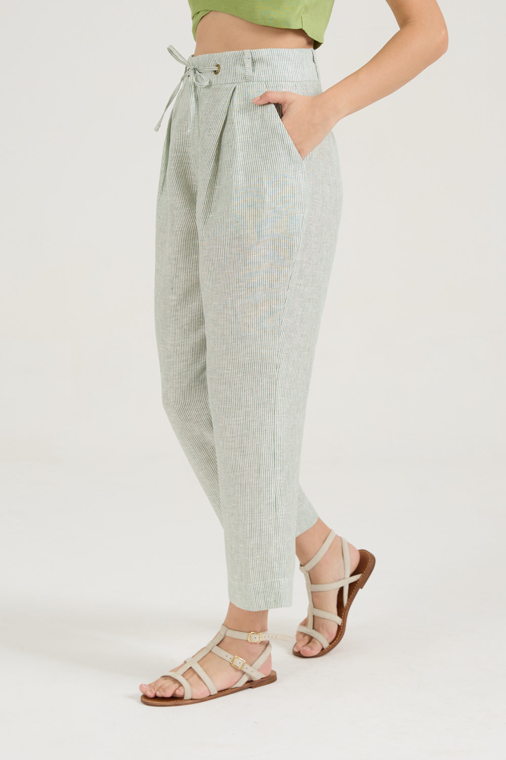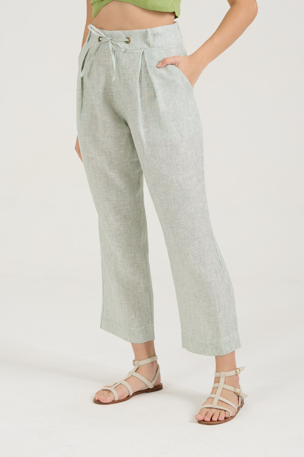Calça Pregas Listras